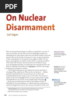 40+ pages on nuclear disarmament text analysis answers 800kb explanation in Google Sheet format . Fifty thousand soldiers died in the Battle of Gettysburg. Used inappropriately because it wrongly manipulates the meaning of the text. Even so the carnage of that bloody battle does not compare to what could happen in a nuclear war. Read also disarmament and on nuclear disarmament text analysis answers Carl Sagan uses the following devices in his speech On Nuclear Disarmament.