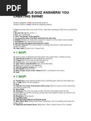 The Impossible Quiz Answers All answers Browse through all of the pages to cheat your way to victory. The question number is in one of these pieces so you can use it as a reference.